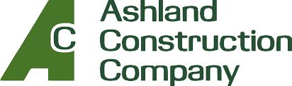 Dark green Ashland Construction Company logo featuring a stylized A with an embedded C Represents a construction firm offering building services like hurricane shutters in Topsail Wilmington Oak Island Myrtle Beach
