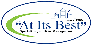 Professional At Its Best HOA Management logo with residential buildings and a green swoosh established 1986 Ideal for communities in Topsail Wilmington Oak Island or Myrtle Beach requiring property management including hurricane shutter guidelines