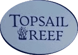 An oval Topsail Reef logo features dark navy TOPSAIL and REEF text with a coral silhouette on a light blue grey background Perfect for coastal brands in Topsail Wilmington or Oak Island