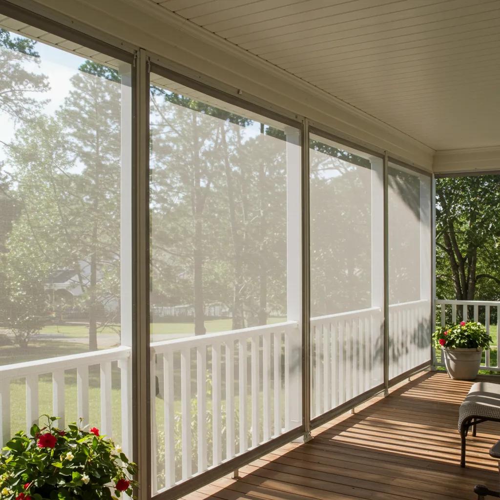 aramid hurricane screens installed on a porch showcasing their visibility and strength with sunlight filtering through f0696609 b77b 4e4f bb80 38ed38c79395webp